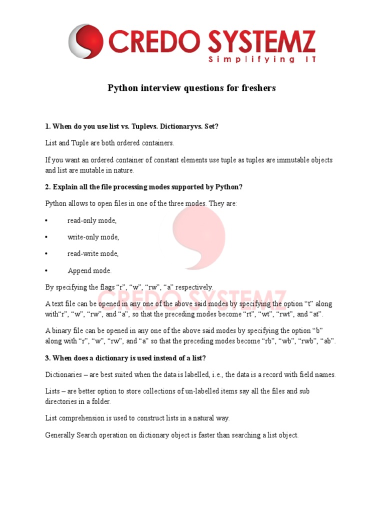 Python Interview Questions for Freshers|Python Interview Questions and ...
