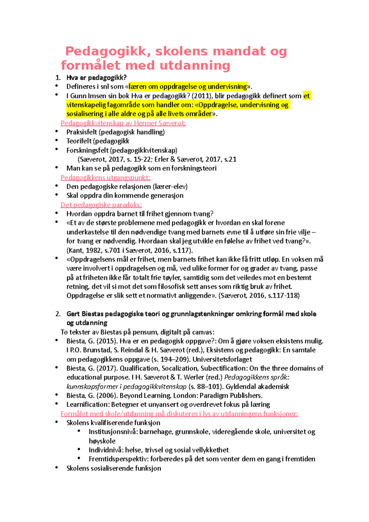 Pedagogikk pensum oversikt - Hva er pedagogikk? Befring (2004) o ...