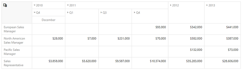 jQuery PivotGrid - Visual Elements - DevExtreme jQuery Documentation