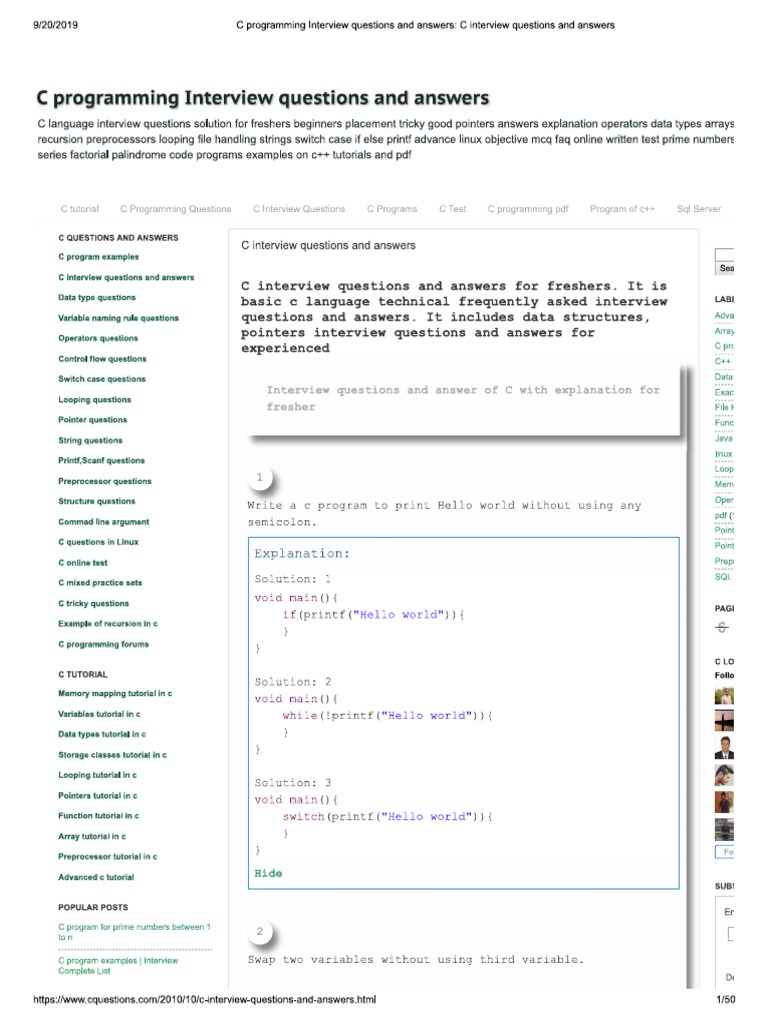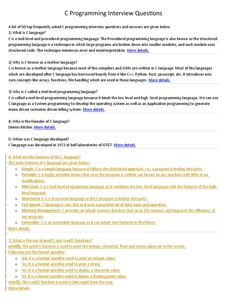 C programming interview questions and answers with explanations pdf - C ...