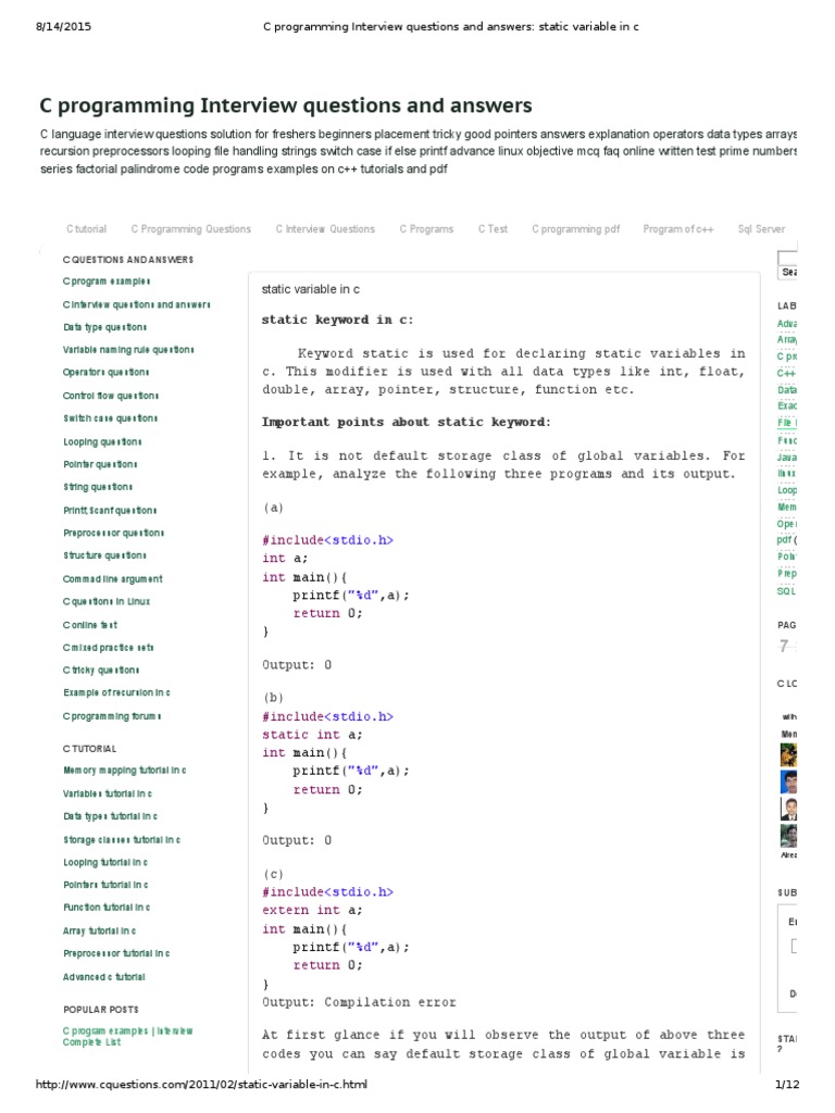 C Programming Interview Questions and Answers - Static Variable in C ...