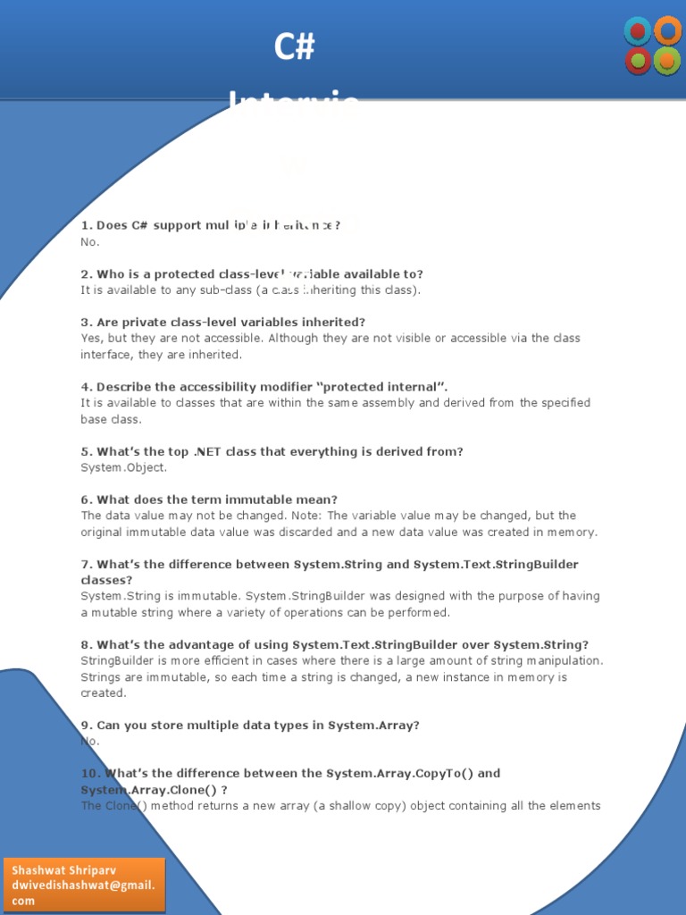 C# Interview Questions Guide | PDF | Inheritance (Object Oriented ...
