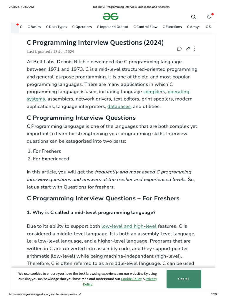 Top 50 C Programming Interview Questions and Answers | PDF | Pointer ...