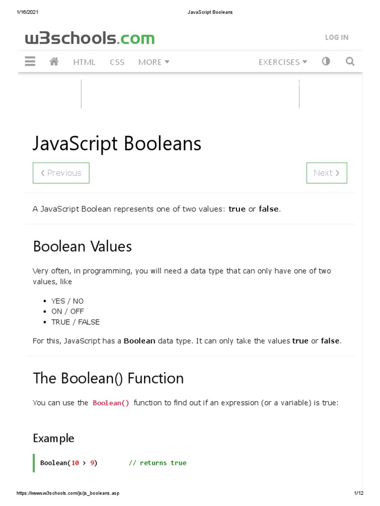 JavaScript Booleans | PDF | Boolean Data Type | Java Script
