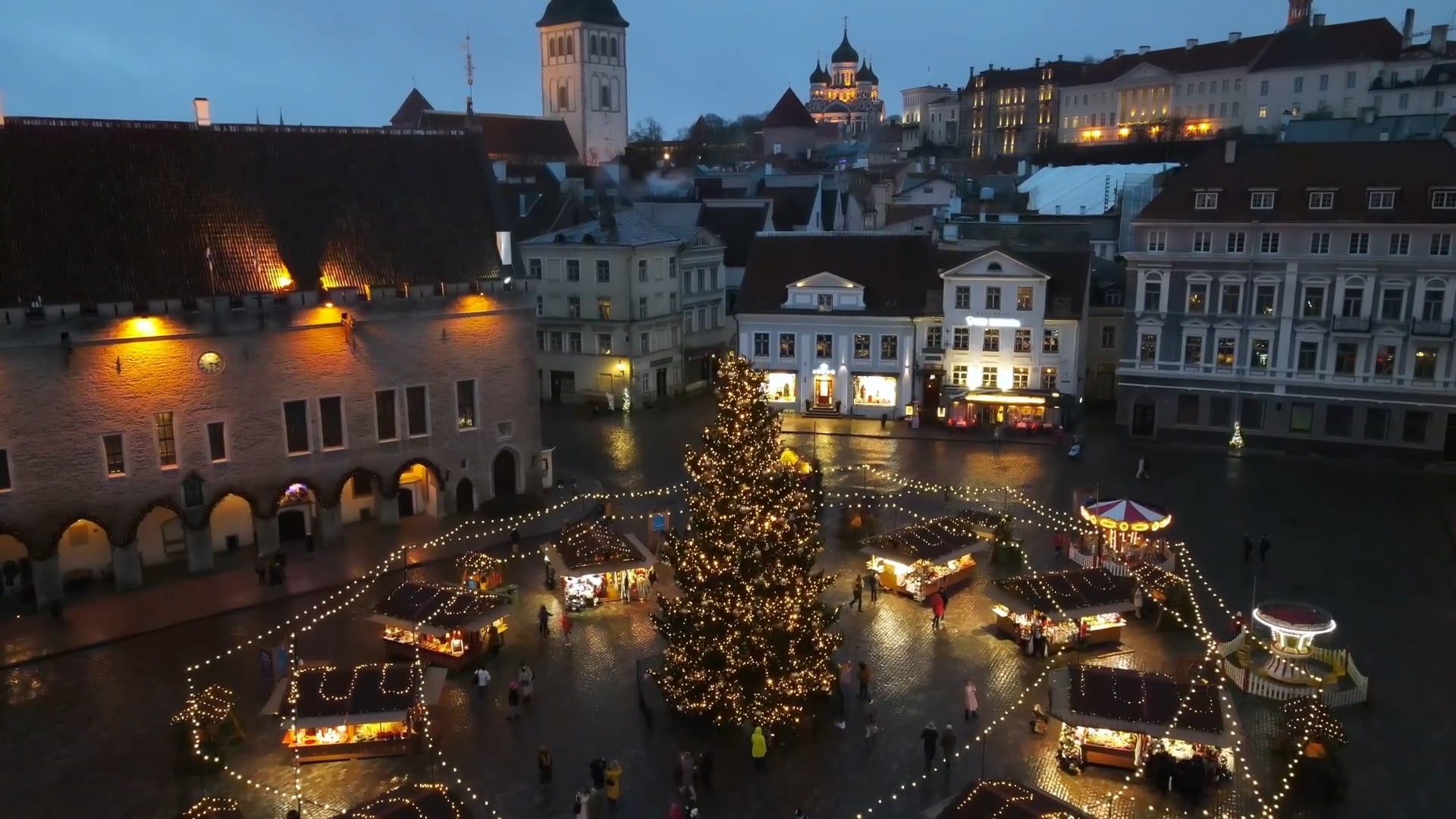 Drone views of Estonia's Tallinn Christmas market
