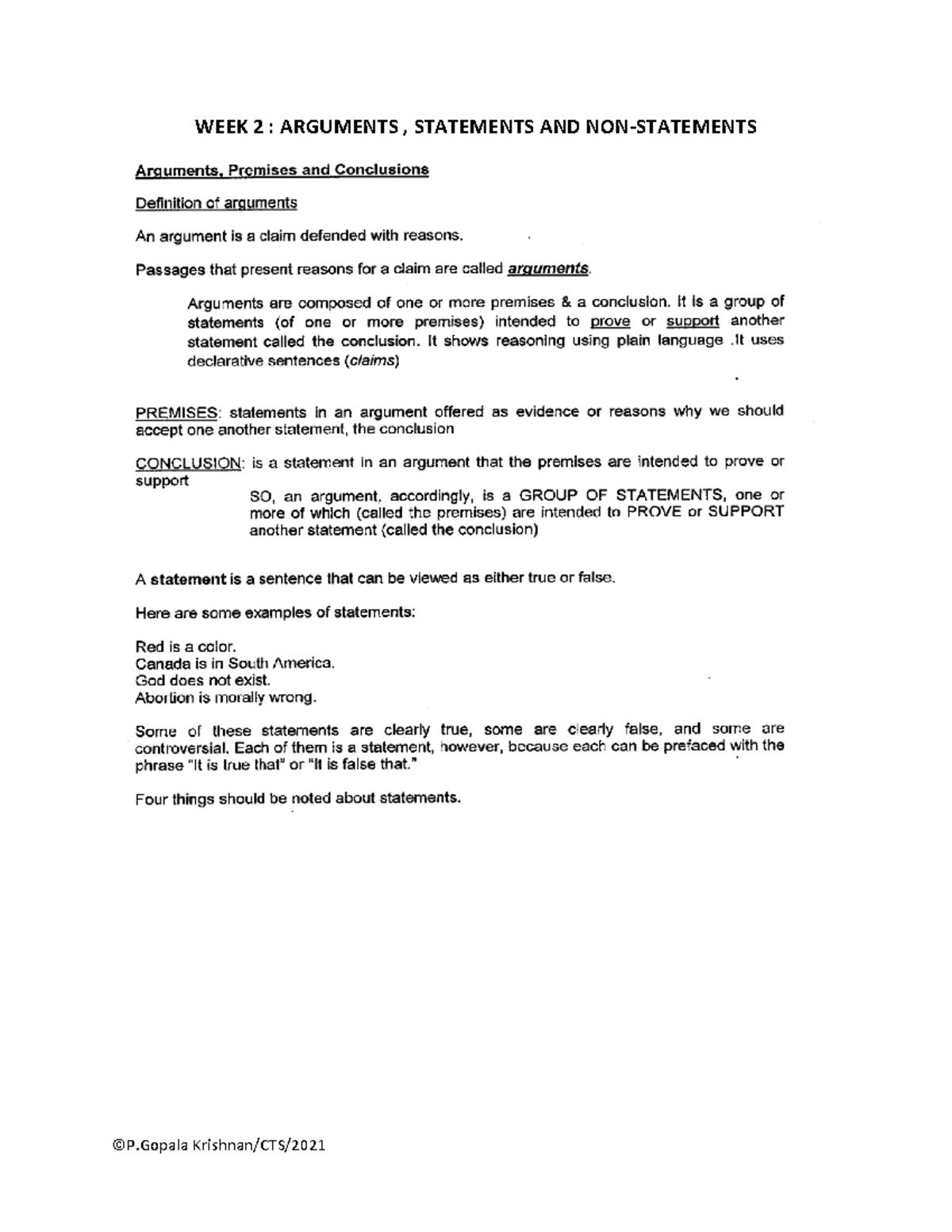 Critical Thinking Skills - WEEK 2 : ARGUMENTS , STATEMENTS AND NON ...