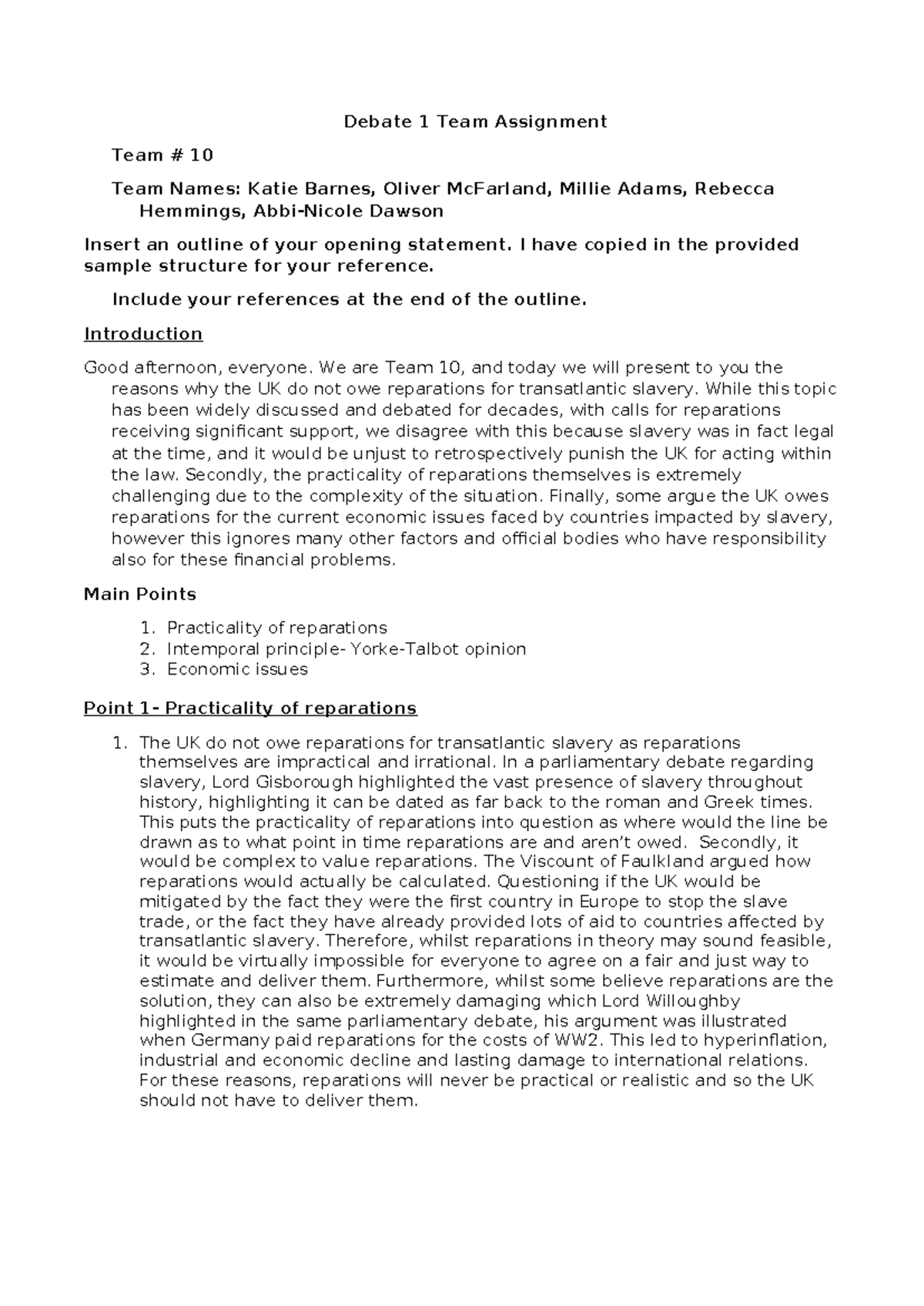 Debate Assignment: Team 10 - Opening Statement Outline - Studocu