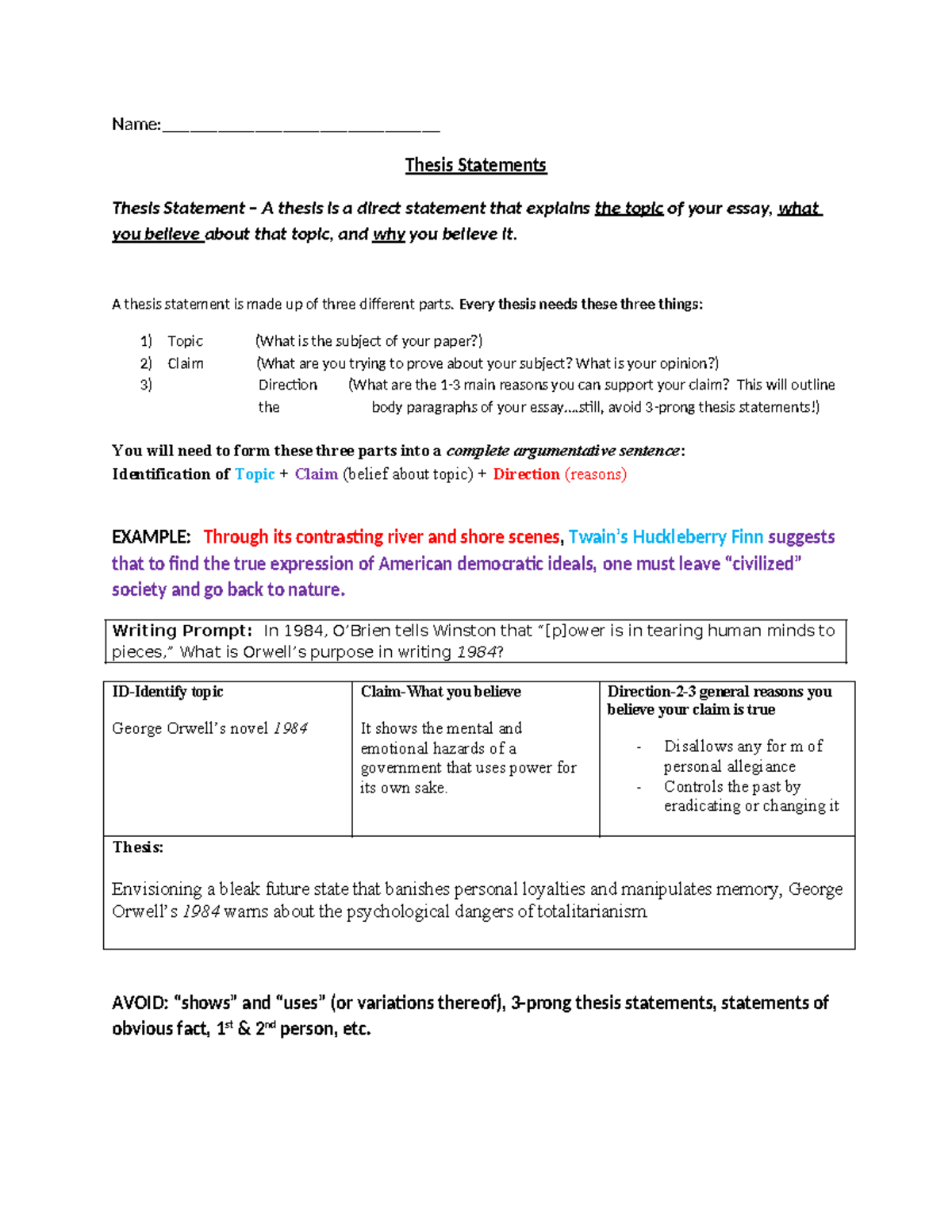 Thesis Statements for 1984: Crafting Effective Arguments - Studocu