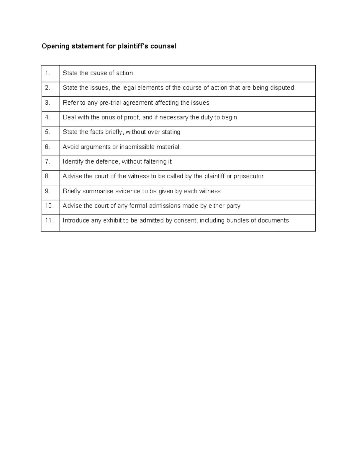 Plaintiffs Counsel Opening Statement Guidelines for Litigation - Studocu