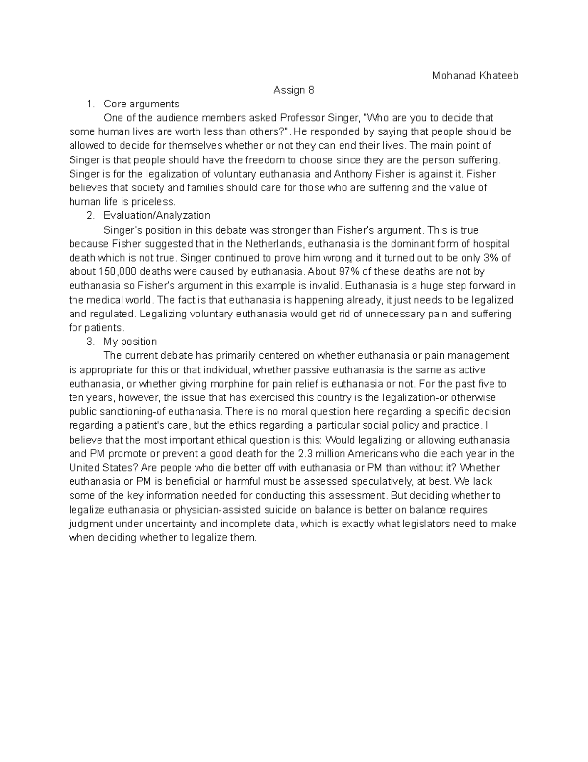 Assign 8 - Euthanasia: Core Arguments, Analysis, and Ethical Discussion ...