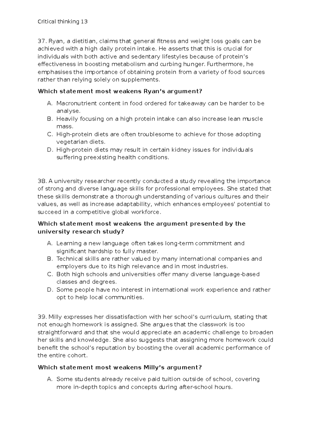 Critical Thinking 13: Analyzing Arguments and Weakening Statements ...