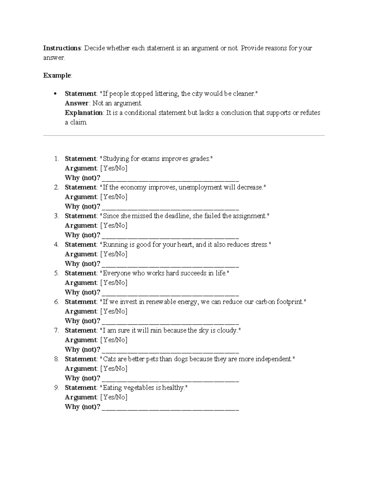 What Not an Argument Exercise: Identifying Arguments in Statements ...