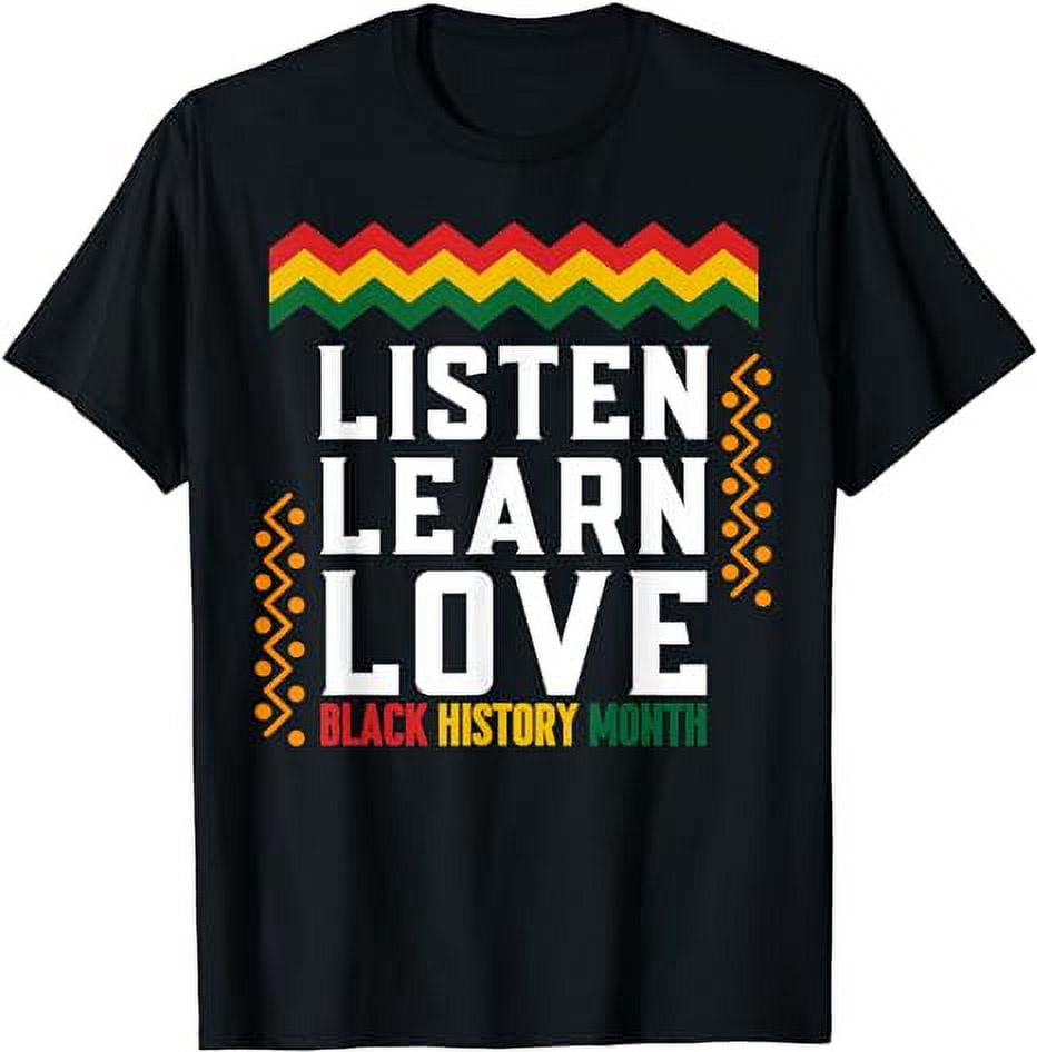 Listen Learn Love Black History Month African American Afro T-Shirt ...