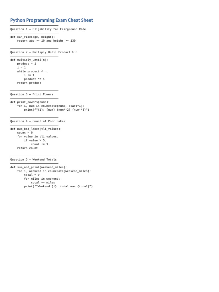 Python Exam Cheat Sheet | PDF