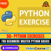 Based on this image's title: “50+ PYTHON EXERCISES FOR BEGINNERS MASTER PYTHON BASICS - Expert Training”