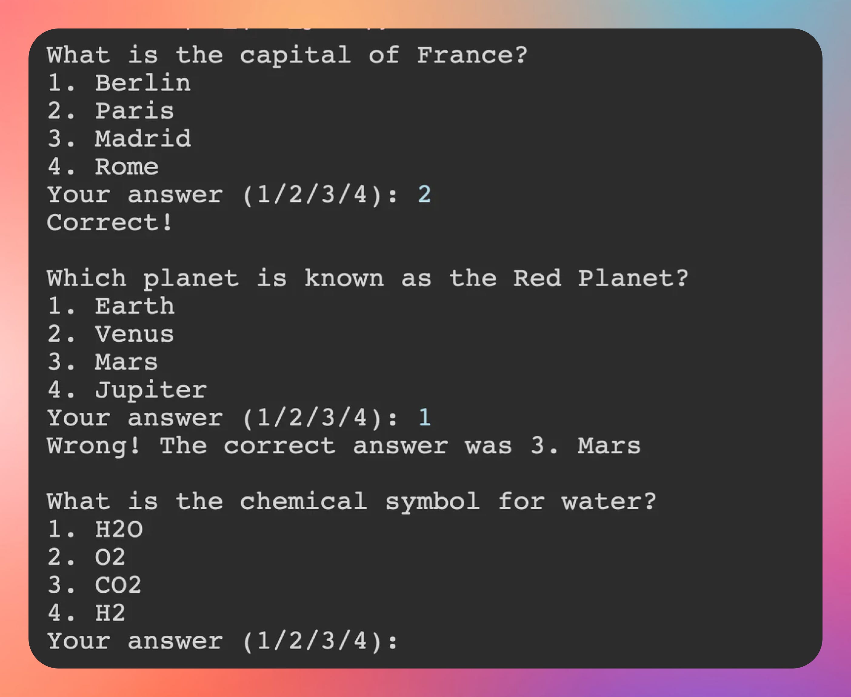 Based on this image's title: “Python Project: Build a Simple Quiz Game - by Ardit Sulce”
