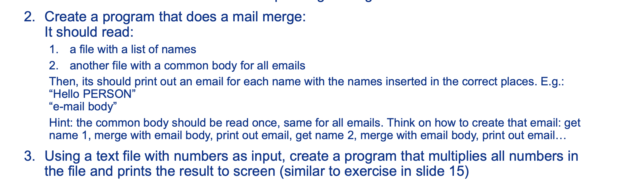 Solved 2. Create a program that does a mail merge: It should | Chegg.com