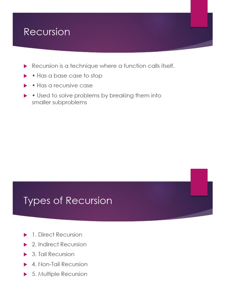 SOLUTION: Recursion Programs and it's types with example in data ...