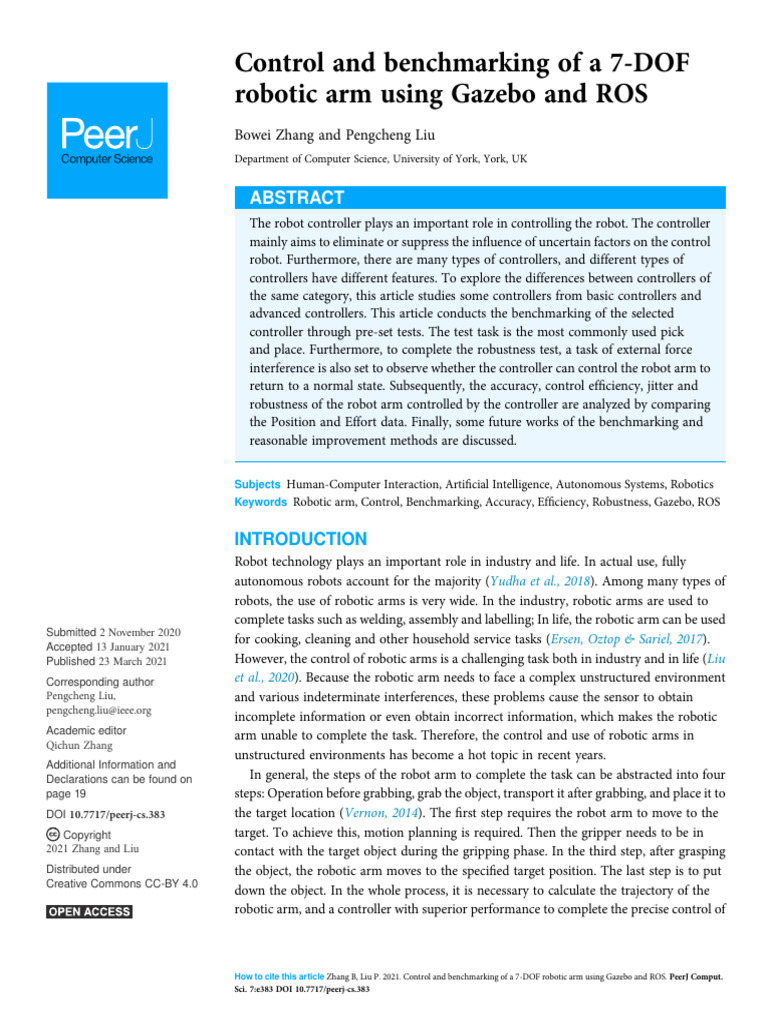 Peerj Cs 383 | PDF | Control Theory | Robotics