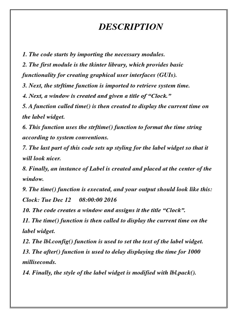 Tkinter Digital Clock Project Guide | PDF