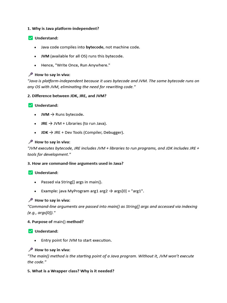 Java Unit1 (Viva) | PDF