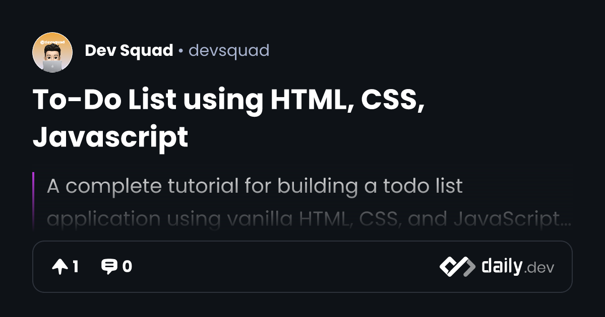 To-Do List using HTML, CSS, Javascript | daily.dev