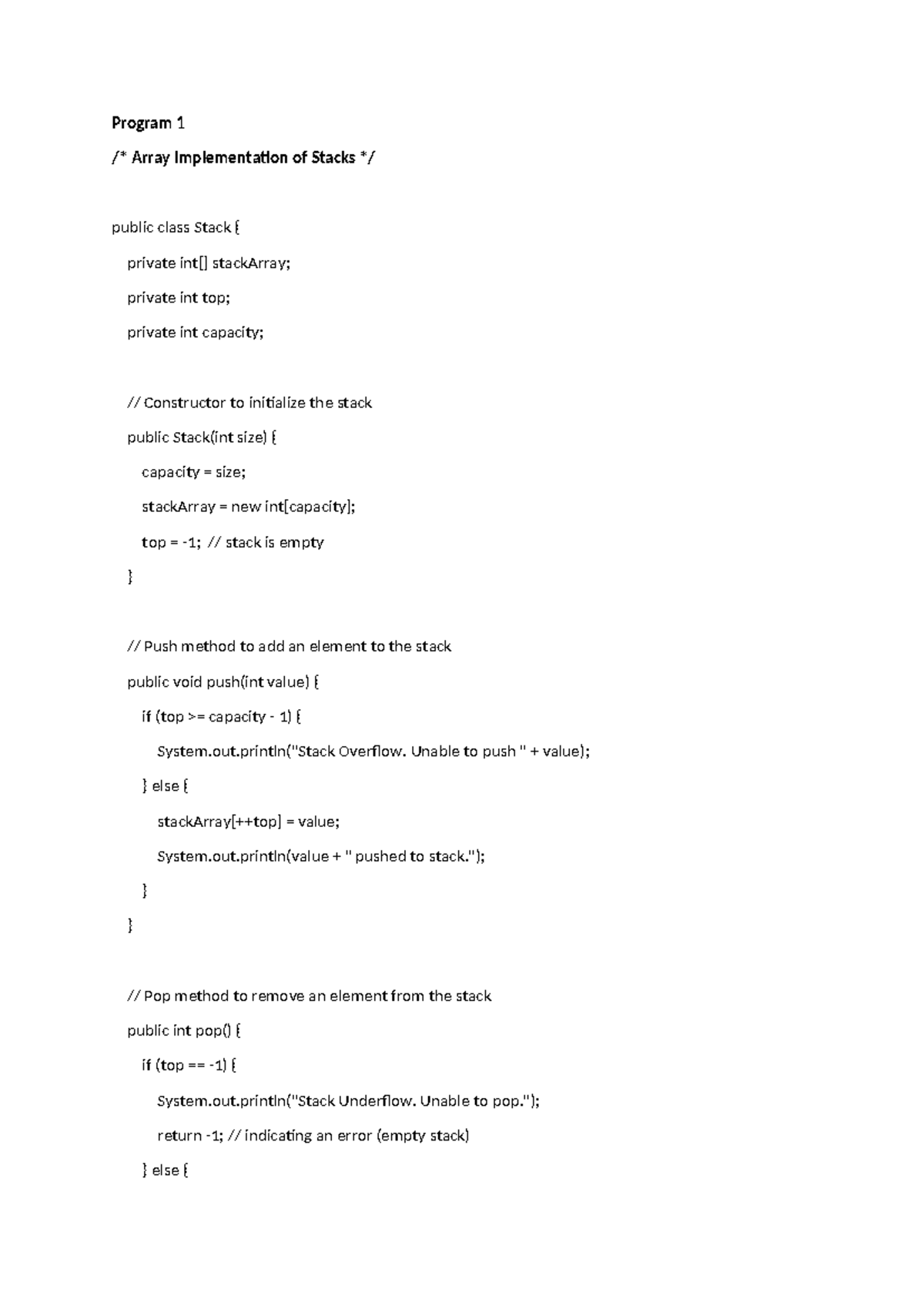 1.a,1.b nd 1 - MANUAL - EX 1 ARRAY IMPLEMENTATION OF STACK ADT DATE ...