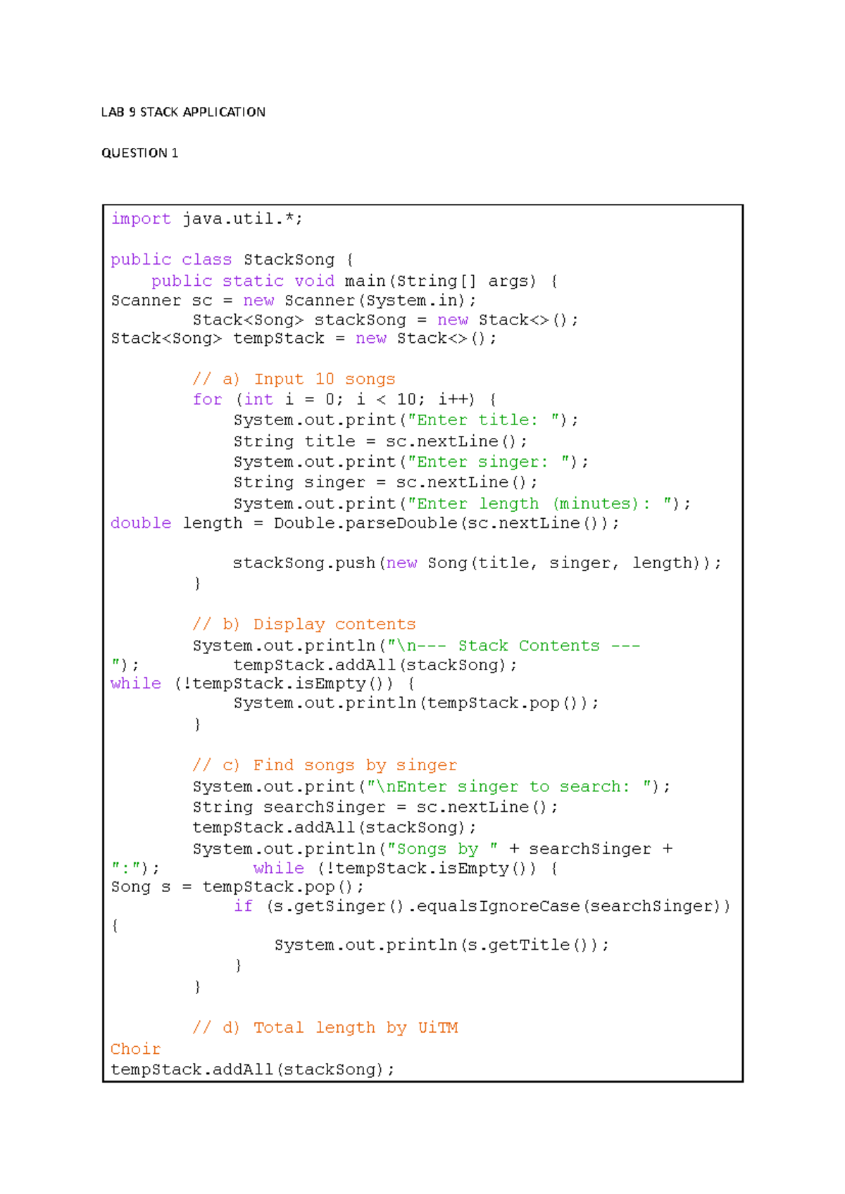 LAB 9: Stack Application for Songs & Job Search - CSC248 - Studocu