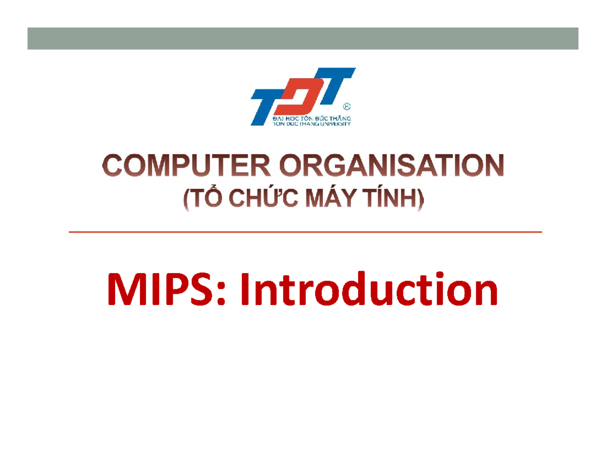 MIPS: Introduction to Computer Organisation IT TDT - Lecture Notes ...