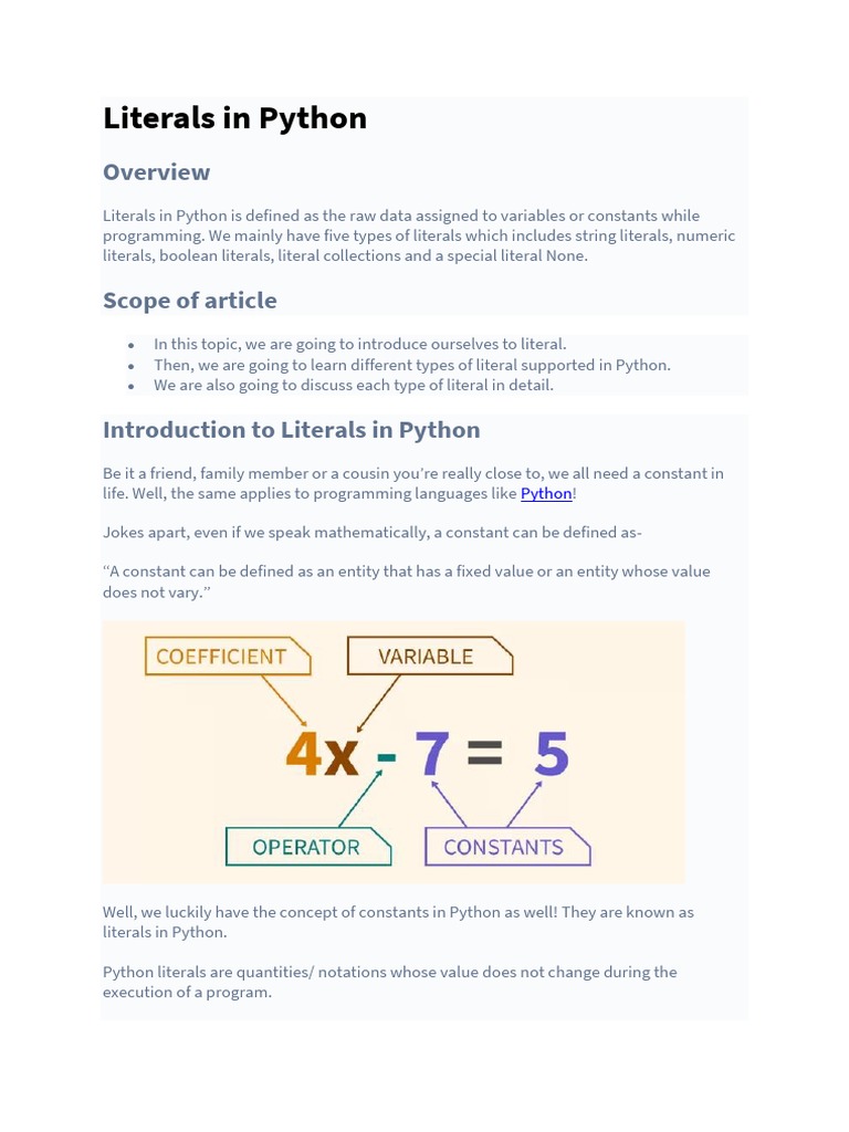 Literals-in-Python | Download Free PDF | Boolean Data Type | String ...
