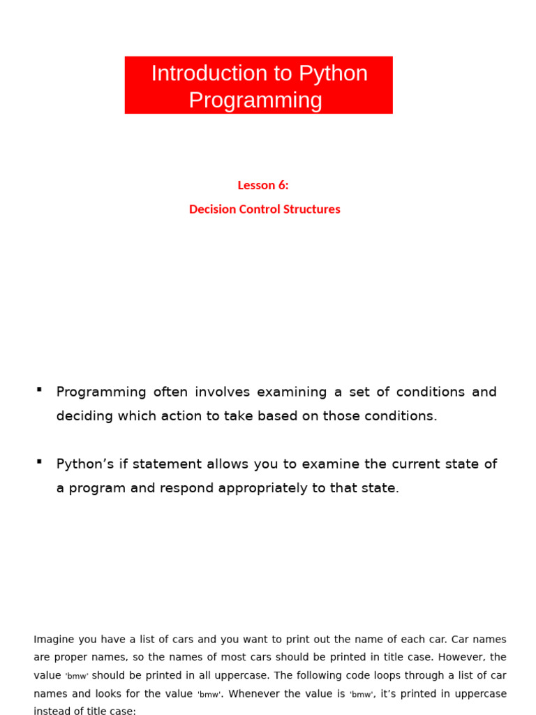 Lesson 6 - Conditional Structures | PDF | Control Flow | Software ...