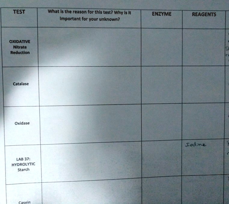 [Solved] Unknown Testing: Nitrate Reduction, Oxidase and Catalase Tests ...