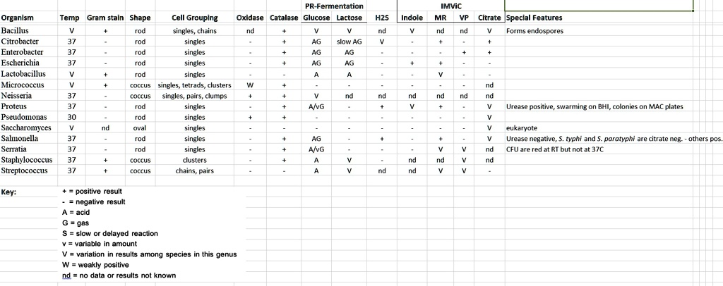 SOLVED: PR-Fermentation Oxidase Catalase Glucose Lactose HZs Indole ...
