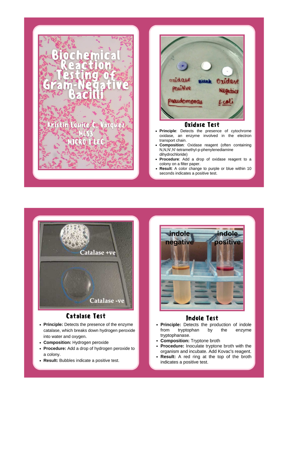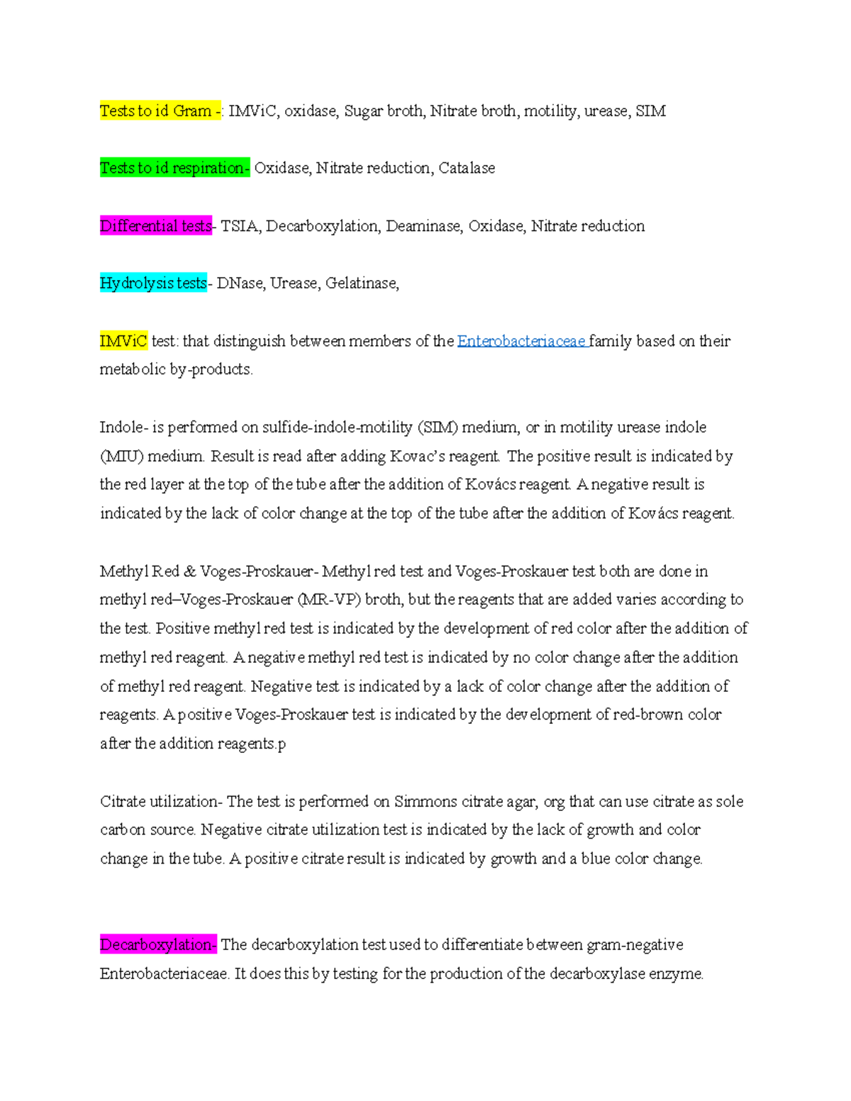 Lab Tests - Lab notes - Tests to id Gram -: IMViC, oxidase, Sugar broth ...