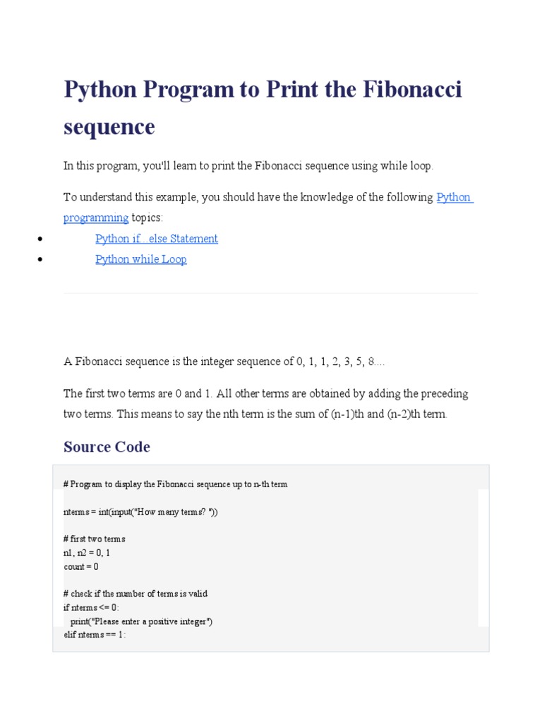 Python Program To Print The Fibonacci Sequence | PDF | Sequence ...