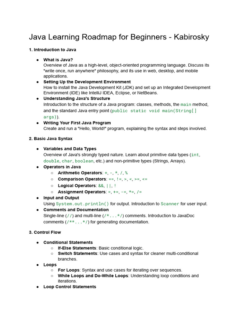 Java Learning Roadmap for Beginners | PDF | Java (Programming Language ...