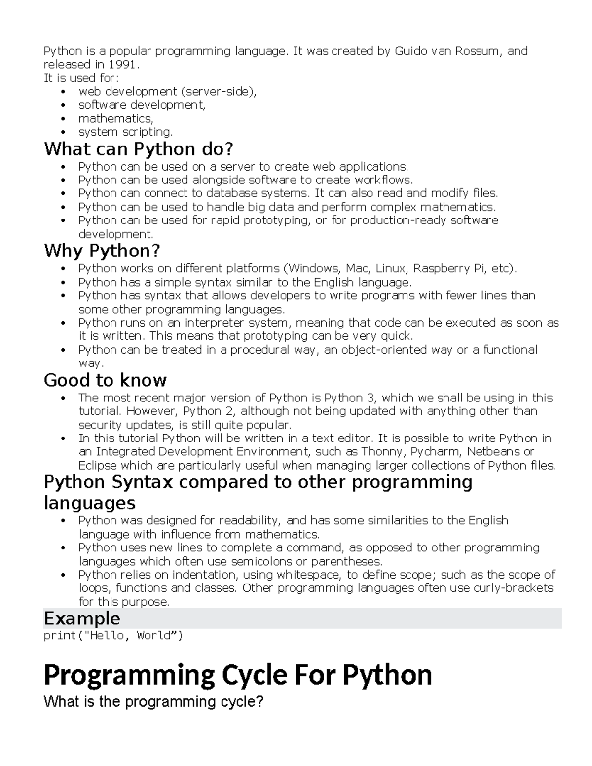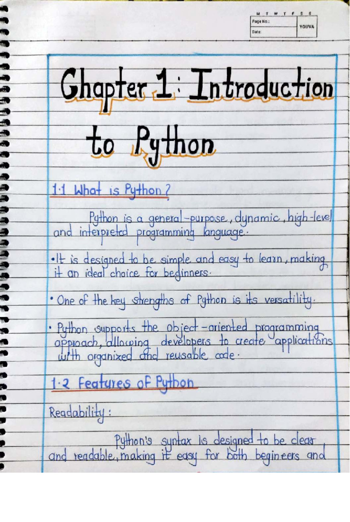 Basics of Python (CS101) - Introduction, Features, and Modules - Studocu