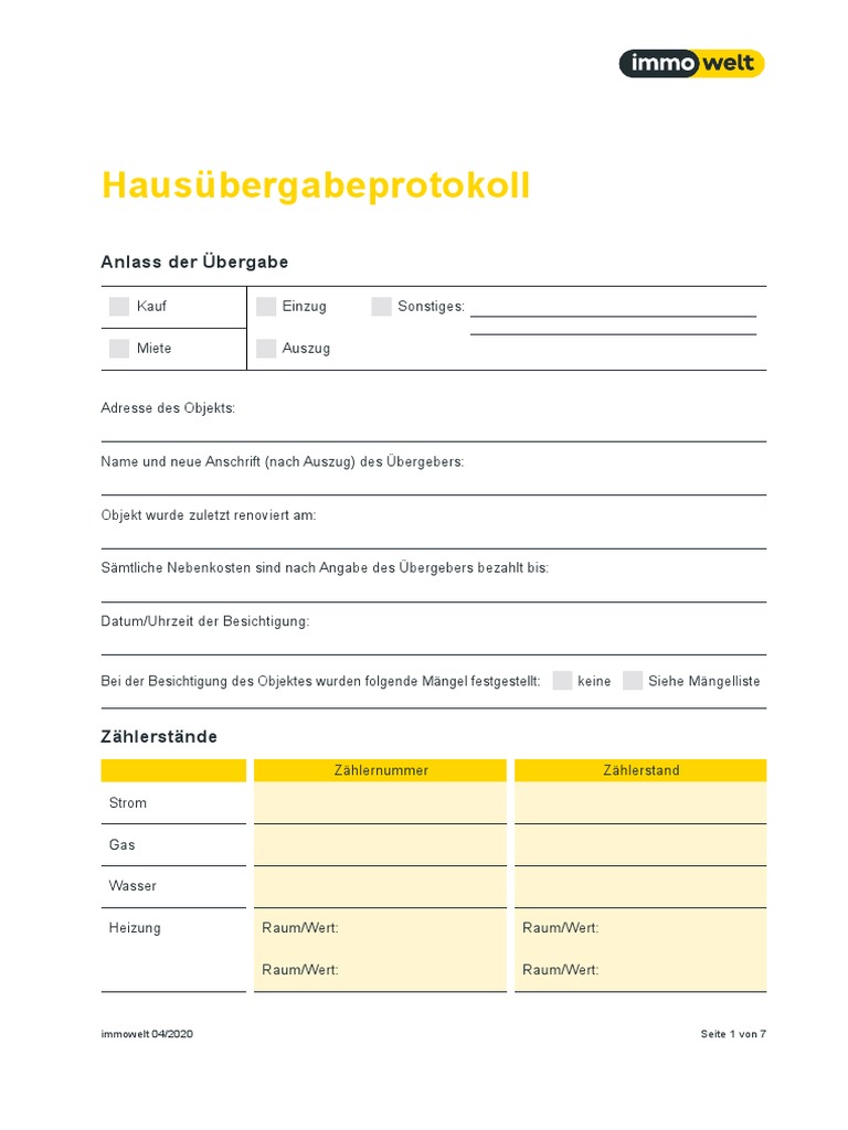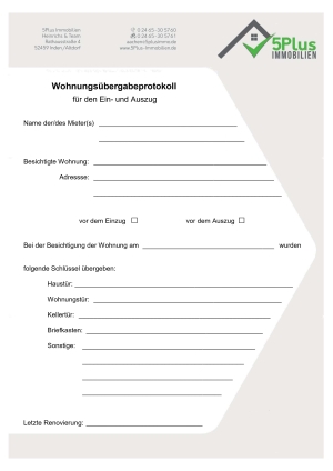 Hausübergabeprotokoll | PDF Vorlage | Verkauf & Vermietung