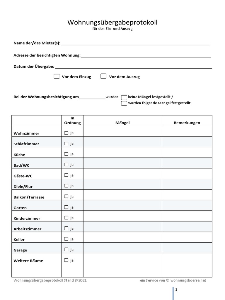 20 Ideen Für Wohnungsübergabeprotokoll Pdf – Beste Wohnkultur ...