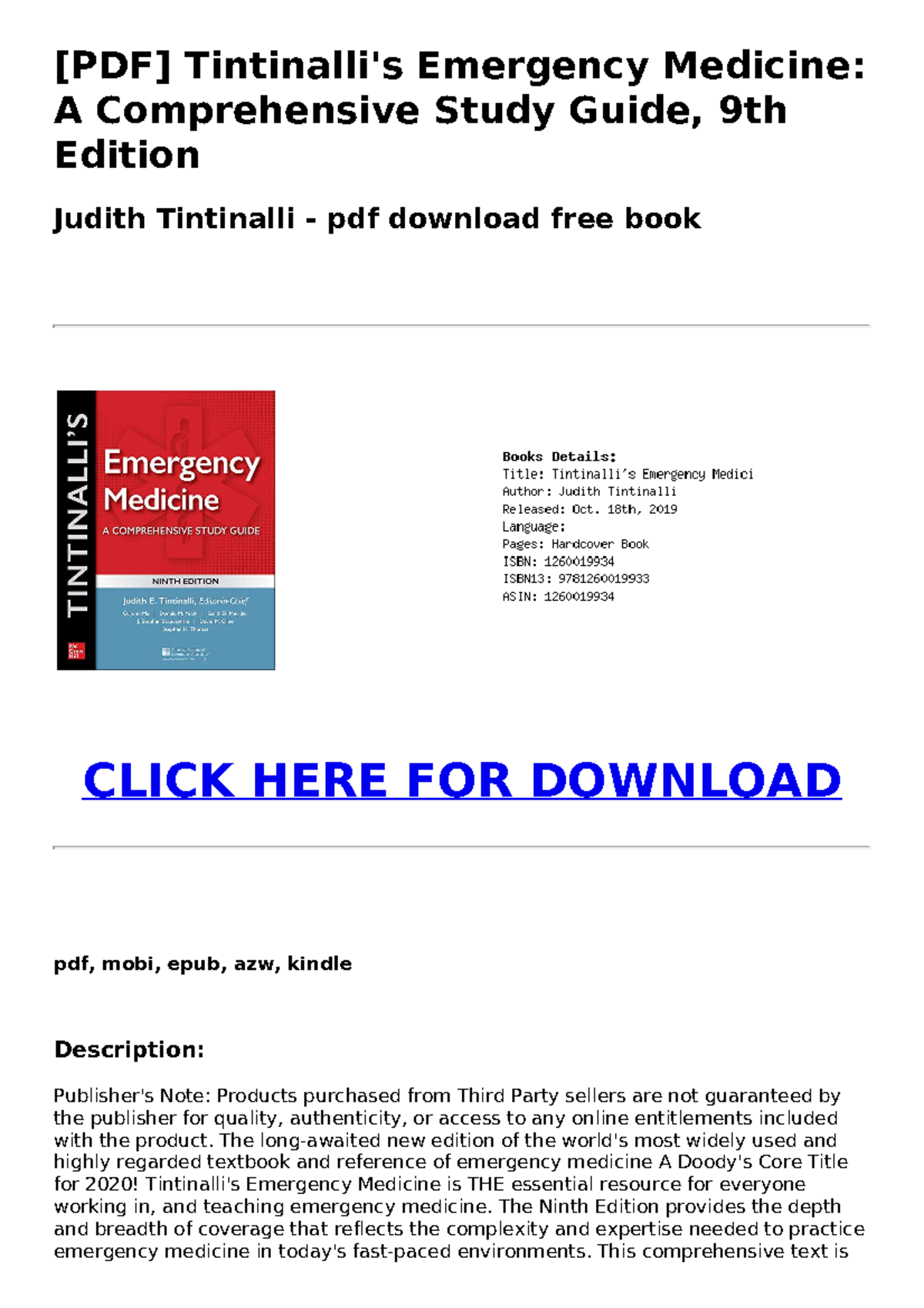 PDF BOOK DOWNLOAD Tintinalli's Emergency Medicine: A Comprehensive ...