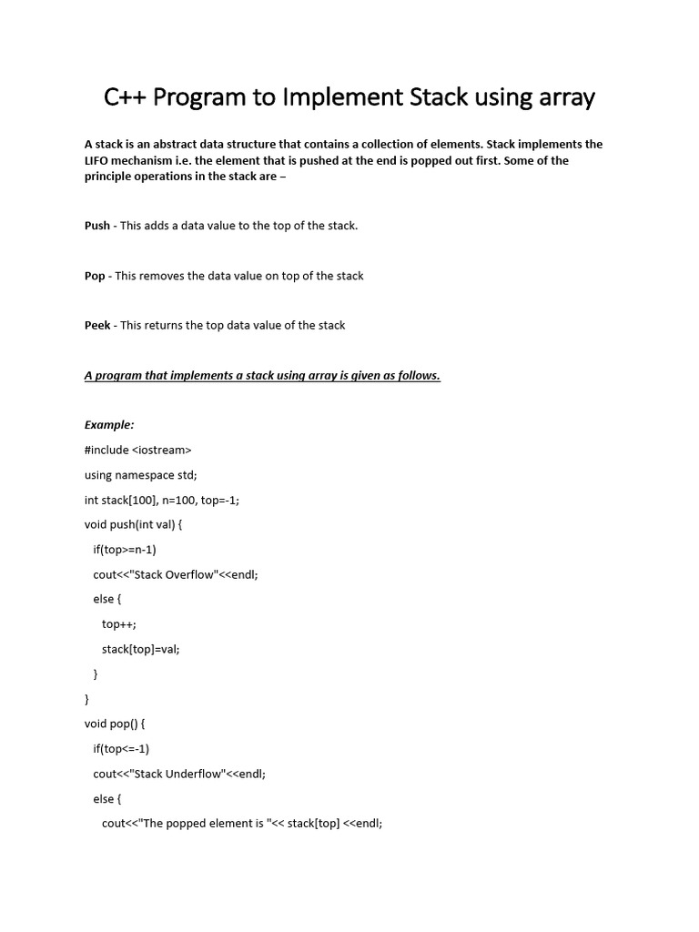 SOLUTION: Implementing stack using array in data structures - Studypool