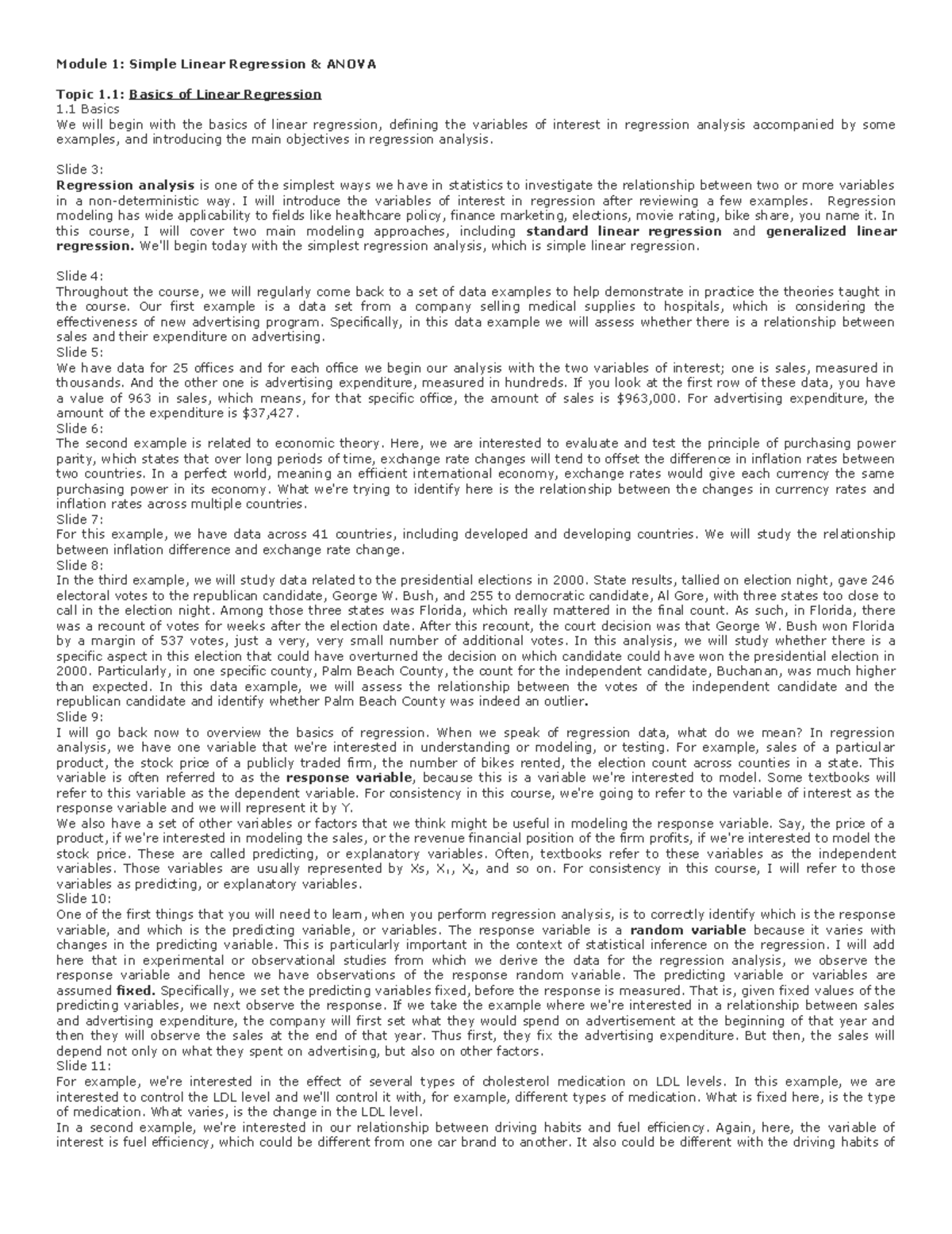 Module 1: Simple Linear Regression Basics and Applications - Studocu