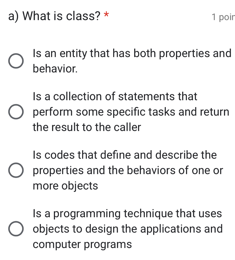 Selesai:What is class? * 1 poir Is an entity that has both properties ...