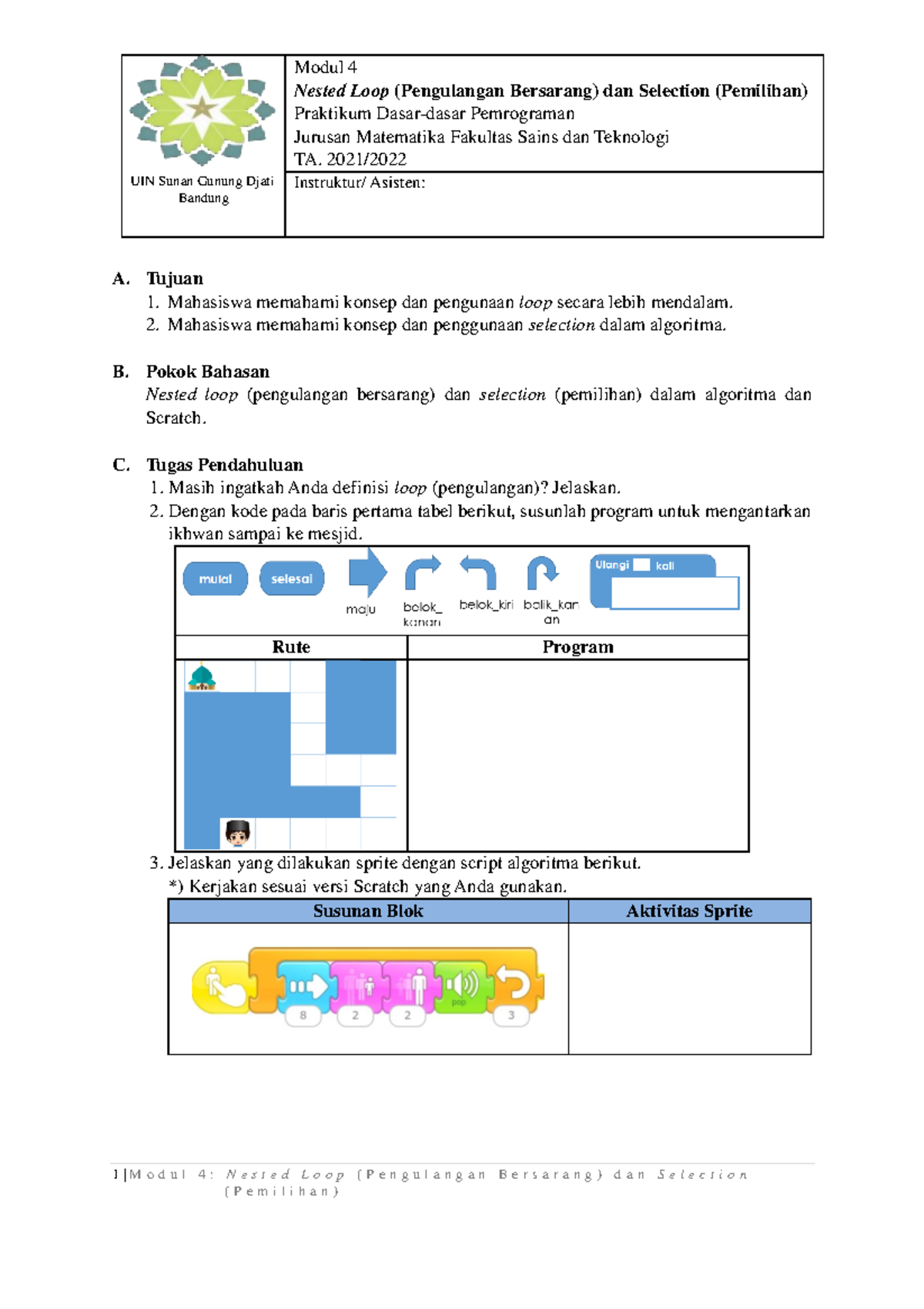 Modul 4 Praktikum Dasar-Dasar Pemrograman: Nested Loop dan Selection ...