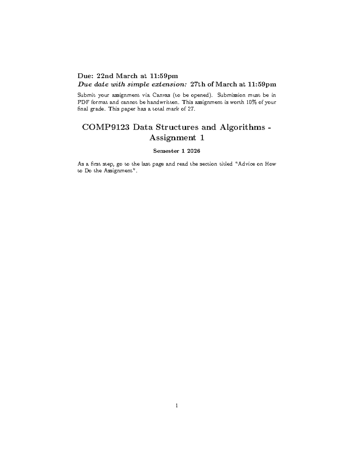 COMP9123 Assignment 1 Questions: Data Structures & Algorithms - Studocu