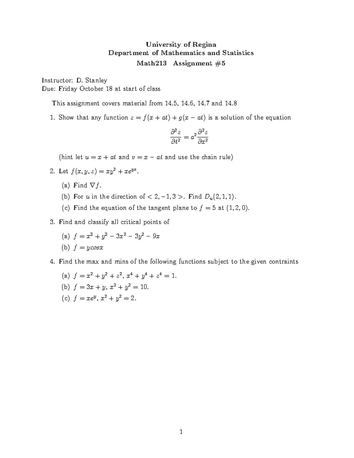 Math213 Fall 2019 Assignment 5: Advanced Function Analysis - Studocu