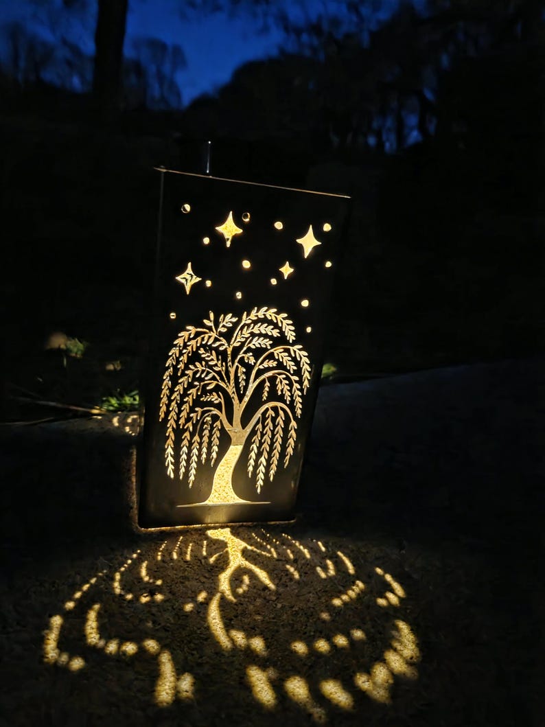 Custom Willow Tree Solar Pathway Light: Steel Garden Decor, House ...