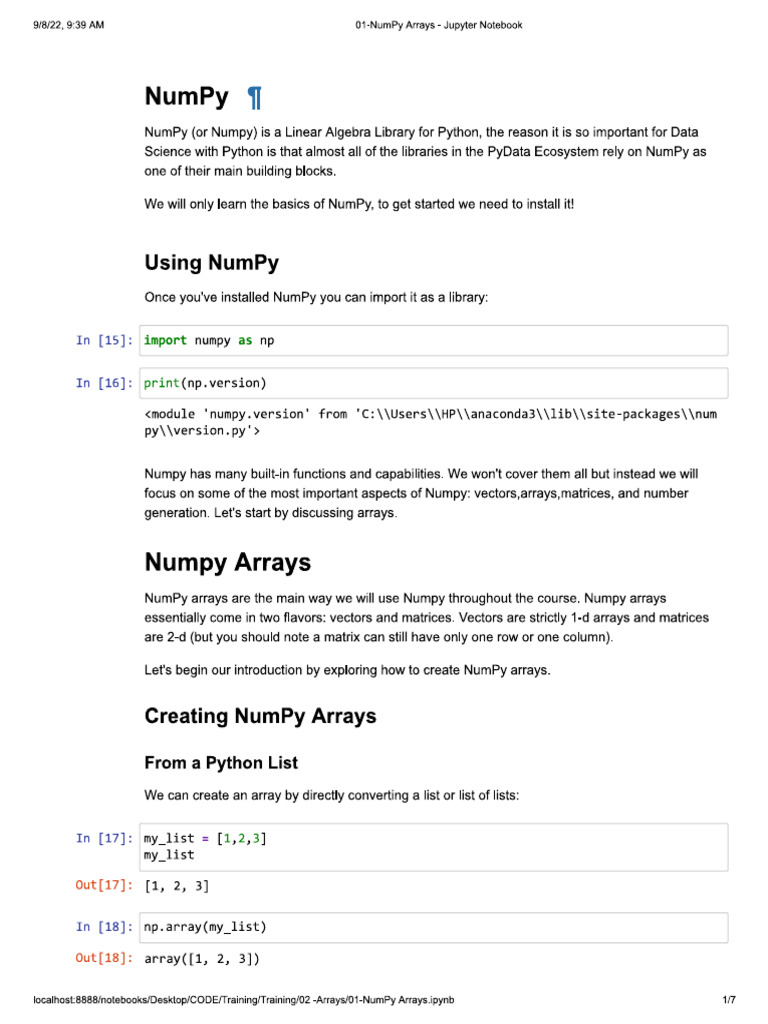 01-NumPy Arrays - Jupyter Notebook | PDF | Mathematical Physics | Computing