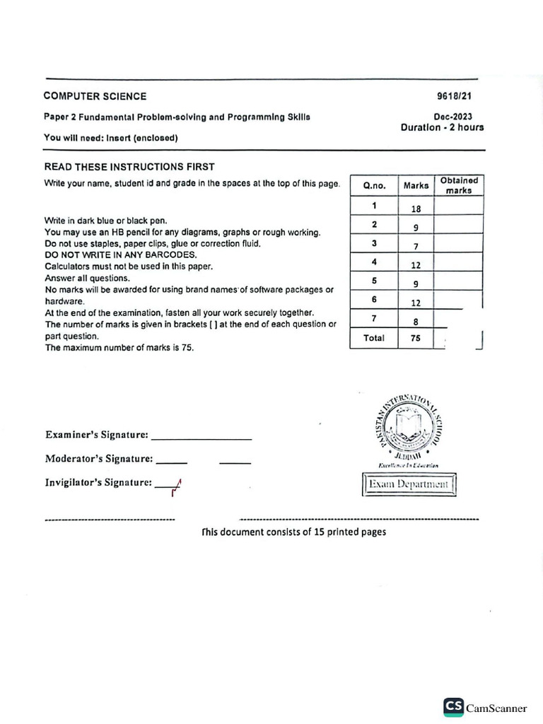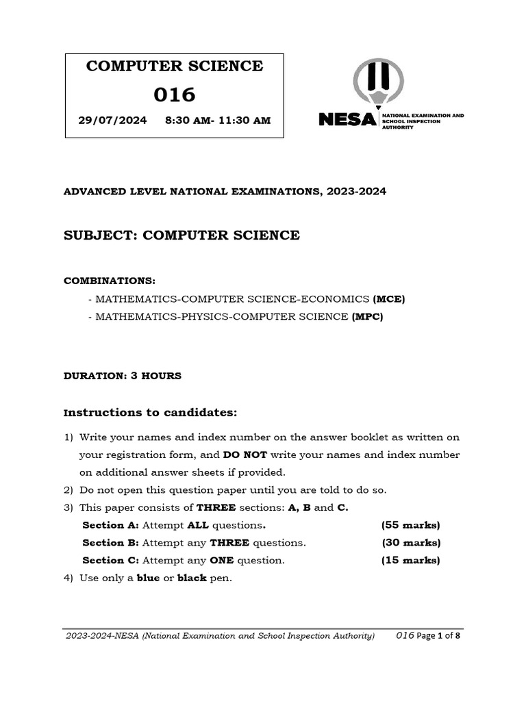 Computer Science P2 Unsolved 2023-2024 | PDF