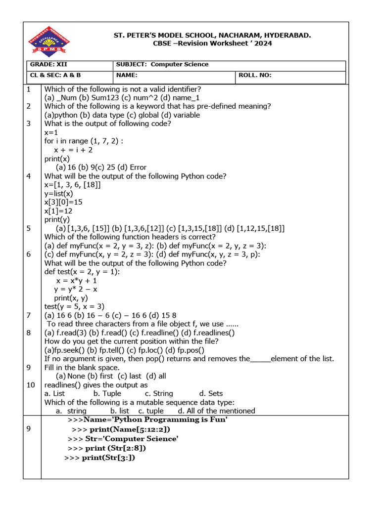 Practice Python Questions Class Ix 2024-25 | PDF
